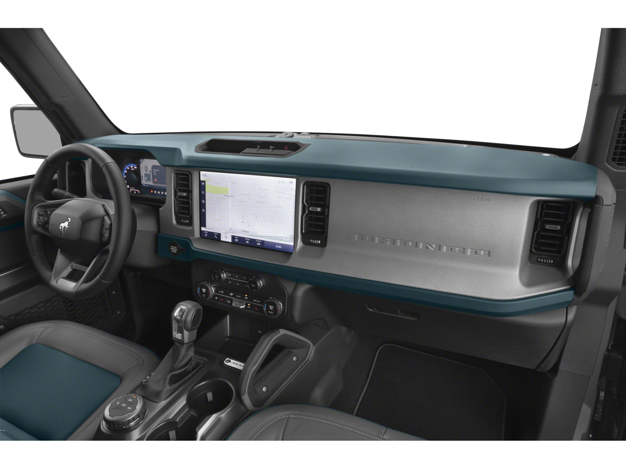 The 2024 Ford Bronco Outer Banks 4-Door 4x4 is a rugged yet refined SUV, designed to tackle any adventure with style and capability. Finished in the striking Eruption Green Metallic, it combines a powerful 2.3L EcoBoost I-4 engine with a 10-speed automatic transmission for smooth and responsive driving. Inside, the Bronco features a refined combination of leather-trimmed and vinyl seats in a stylish Roast/Black color scheme, offering both comfort and durability for up to five passengers. Equipped with the Sasquatch Package, this Bronco is ready for off-road challenges with 35 tires, front and rear locking differentials, and advanced 4x4 capabilities. The 360-degree camera and adaptive cruise control enhance safety and convenience, while the wireless charging pad and heated steering wheel add to the luxury features. The interior is designed with modern technology, including a 12 LCD center stack touchscreen, SYNC4, and dual-zone climate control, ensuring both functionality and comfort on every journey. With additional features like the soft top with prep kit, advanced safety systems, and a comprehensive trailer tow package, the 2024 Ford Bronco Outer Banks is ready to take on both urban roads and rugged terrains., Soft Top Cloth W/Prep Kit, 10 Speakers w/Subwoofer, 360-Degree Camera, Adaptive Cruise Control, Additional Sound Deadening, Equipment Group 314A High/Lux Package, Evasive Steering Assist, Front Parking Sensors, Heated Steering Wheel, Information on Demand Panel, Radio: B&O Sound System by Bang & Olufsen, Sasquatch Package w/Non Beadlock Capable Wheels, Sideview Mirrors, Soft Canvas Bimini Top (DIO), Universal Garage Door Opener, Wheels: 17 Carbonized Gray-Painted Alloy, Wireless Charging Pad.