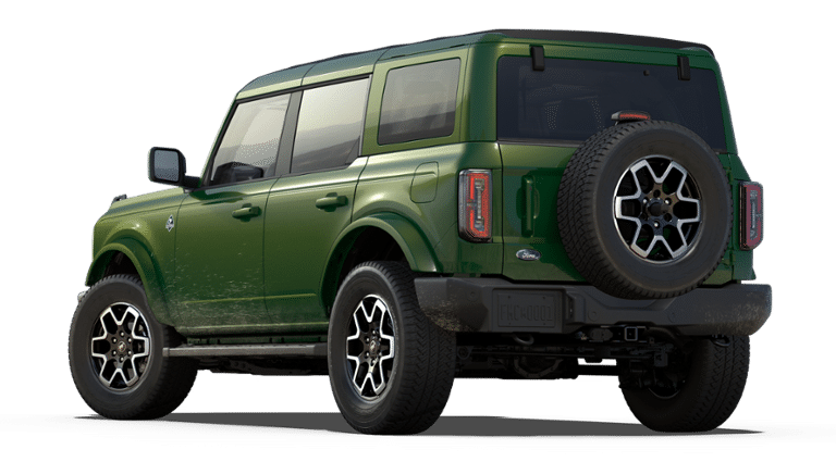 2025 Bronco 4D Sport Utility Outer Banks 4WD Bronco Outer Banks Advanced, 4D Sport Utility, 2.3L EcoBoost I-4, 10-Speed Automatic, 4WD, Green Metallic, Black Onyx Leather, 18 Bright Machined Aluminum Wheels, 3.73 Axle Ratio, 8 Speakers, AM/FM radio: SiriusXM with 360L, Equipment Group 312A Mid Package, Hard Top Sound Deadening Headliner, Painted Hard Top, Rear-Window Defroster & Washer, SYNC 4, Trailer Tow Package (DIO).