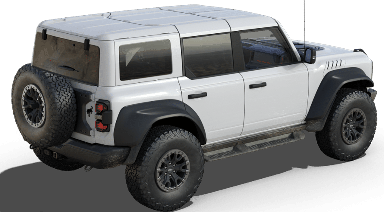 - Experience extreme off-road performance and rugged capability in this 2025 Ford Bronco Raptor. This 4-door 4x4 SUV, finished in Oxford White, is built to conquer any terrain with its 3.0L EcoBoost V6 engine paired to a 10-speed automatic transmission. The HOSS 4.0 suspension system with FOX Live Valve dampers, front and rear locking differentials, and front stabilizer bar disconnect deliver maximum control and confidence on every adventure. Inside, the cabin blends durability with comfort, featuring Onyx and Blue leather-trimmed suede seats, a sport leather steering wheel with paddle shifters, and a digital instrument cluster that keeps you connected and informed. The 12-inch touchscreen with SYNC 4, 360-degree camera, and FordPass Connect add smart technology to your journey. This Bronco Raptor also includes the Lux Package, advanced 4x4 system, and Terrain Management System with G.O.A.T. Modes, allowing you to easily adapt to changing conditions. The body-color hard top, black fender flares, and 17-inch black forged beadlock-capable wheels with massive 37-inch all-terrain tires complete its aggressive stance. With heavy-duty front and rear steel bumpers, full metal bash plates, rock rails with removable running boards, and reinforced swing gate, this Bronco Raptor is engineered to thrive where the pavement ends. Bold, capable, and built for adventurethe 2025 Bronco Raptor is the ultimate expression of off-road dominance.