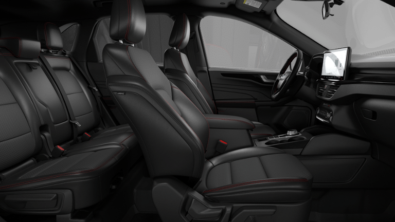 - The 2026 Ford Escape ST-Line Select AWD blends performance-inspired style with advanced technology and confident all-weather capability. Cloaked in Space Silver Metallic, this SUV stands out with its black mesh grille, LED fog lamps and taillamps, ST-Line badging, and sporty rear spoiler. Eye-catching 19-inch machined ebony aluminum wheels and black roof rails complete its bold exterior look. Inside, the Escapes Ebony interior with red stitching highlights its athletic personality. The sport bucket front seats, heated driver and front passenger seats, and flat-bottom heated steering wheel with red accents make every drive both comfortable and dynamic. Dual-zone automatic climate control keeps everyone at ease, while thoughtful touches like power windows with one-touch up/down, USB-A and USB-C ports, and a spacious center console make daily life simpler. The Tech Package #1 elevates your driving experience with a 13.2-inch touchscreen, Adaptive Cruise Control, Lane Centering Assist, Evasive Steering Assist, and Rear Parking Sensors. Youll also enjoy Connected Navigation (1-year included) and seamless integration with the FordPass App for remote access and convenience. Under the hood, the 2.0L EcoBoost engine paired with an 8-speed automatic transmission delivers quick, smooth power, while the sport-tuned suspension and Intelligent All-Wheel Drive ensure confident handling in every season. Features like Auto Start-Stop Technology and Active Grille Shutters help enhance efficiency, too. The Escape ST-Line Select is equally focused on safety, offering BLIS with Cross-Traffic Alert, AdvanceTrac with RSC, a driver knee airbag, Safety Canopy System, and more all part of Fords commitment to keeping you and your passengers secure. Adding to its versatility, this model includes a Panoramic Vista Roof, mini spare tire, and all-weather floor liners with carpet mats ready for both everyday adventures and weekend escapes. The 2026 Ford Escape ST-Line Select AWD embodies modern versatility, sporty confidence, and Ford innovation all in one sophisticated, road-ready package.