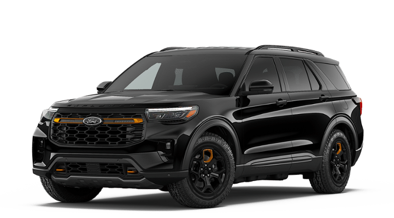 - This 2026 Ford Explorer Tremor 4WD is built for drivers who want rugged capability without giving up comfort, technology, or everyday versatility. Finished in Agate Black Metallic, the Tremor stands out with bold styling elements including blacked-out lighting, Tremor badging, skid plates, off-road auxiliary lighting, front tow hooks, and durable 18-inch black-painted aluminum wheels wrapped in all-terrain tires. A Class III Trailer Tow Package and roof rack side rails add even more utility for adventure-ready driving. Power comes from a 2.3L EcoBoost I-4 engine paired with a 10-speed automatic transmission, delivering confident performance both on and off the pavement. The advanced Torsen limited-slip rear axle, selectable drive modes, and off-road-tuned suspension enhance traction and control in changing conditions. Inside, the cabin blends toughness with refinement. The Onyx interior with Miko inserts features heated and ventilated front seats, heated second-row seats, accent stitching, and a heated leather-wrapped steering wheel with Tremor branding. A 12.3-inch digital instrument cluster and 13.2-inch touchscreen anchor the cockpit, powered by Ford Digital Experience with Google Maps and access to the Play Store. Convenience highlights include a power liftgate, ambient lighting, wireless Apple CarPlay and Android Auto, multiple USB-C ports across all rows, and a 110V/150W power outlet. Technology and safety are front and center with features like a 360-degree camera, remote start, keyless entry with push-button start, Wi-Fi hotspot capability, Ford Co-Pilot360 safety systems, and available BlueCruise hands-free highway driving capability. A premium B&O sound system rounds out the experience with rich, immersive audio. With three-row seating, a power-folding third row, and floor liners throughout, the 2026 Explorer Tremor is equally ready for daily driving, family trips, or weekend escapesdelivering a confident blend of off-road capability, modern tech, and refined comfort.