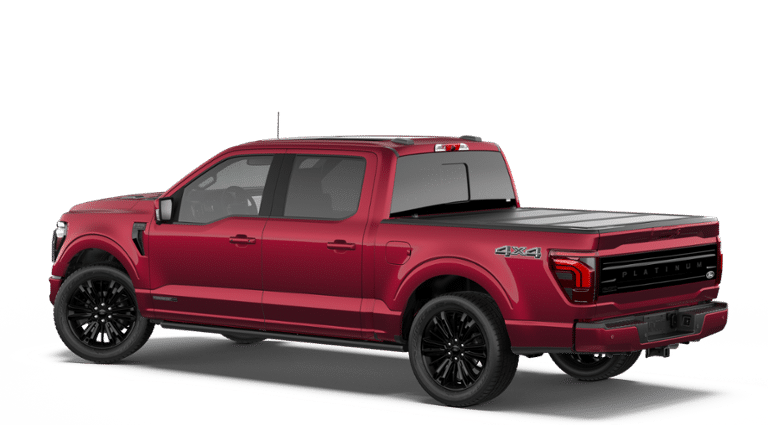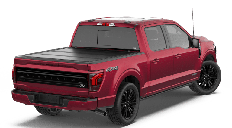 F-150 Platinum, 4D SuperCrew, 3.5L PowerBoost Full-Hybrid V6, 10-Speed Automatic, 4WD, Ruby Red Metallic, Gray Leather.