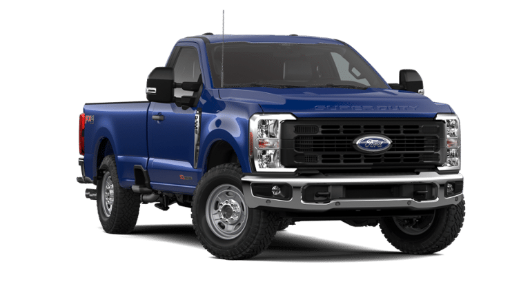 - This 2026 Ford F-250 Super Duty Platinum brings unmatched strength, modern technology, and premium capability to the jobsite or the open road. Finished in the striking Argon Blue Metallic, this Regular Cab 4x4 is engineered to handle demanding workloads with confidence thanks to the 6.7L High Output Power Stroke Turbo Diesel paired with the 10-speed TorqShift automatic transmission. This powertrain delivers exceptional torque, smooth shifts, and the durability the Super Duty lineup is known for. Equipped with multiple off-road and performance packages, this F-250 is purpose-built for versatility. The FX4 Off-Road Package adds skid plates and off-road-tuned components, while the XL Off-Road Package enhances capability further with 33" LT all-terrain tires, an electronic-locking 3.31 axle, and upgraded suspension features. The High-Capacity Trailer Tow Package and Payload Package Upgrade ensure the truck is fully prepared for heavy towing, hauling, and commercial-level demands. Inside, the cabin is designed around practicality and comfort, featuring Medium Dark Slate cloth seating, a 40/20/40 split-bench front seat, manual lumbar adjustment, and an easy-to-use SYNC 4 system with an 8" touchscreen. Technology and convenience continue with remote keyless entry, power windows and locks, tilt/telescoping steering wheel with audio controls, Ford App connectivity, and a particulate air filtration system. Advanced safety and visibility features include BLIS (Blind Spot Information System), rear parking sensors, a rearview camera, AdvanceTrac with RSC, and the enhanced 360-Degree Camera Package for full exterior awareness when maneuvering in tight spaces. Upfitter switches provide seamless integration for accessories or work equipment. Exterior enhancements include the XL Chrome Package with bright accents and fog lamps, power tailgate lock, black tow hooks, trailer tow mirrors, and functional pickup box tie-down hooksbringing together form and function in a refined but capable design. With dual batteries, a heavy-duty alternator, 11,000-lb GVWR setup, and rugged chassis engineering, this F-250 Platinum delivers the strength Ford Super Duty owners rely on every day. Whether for towing, work, or recreational power, its designed to rise to the challenge.