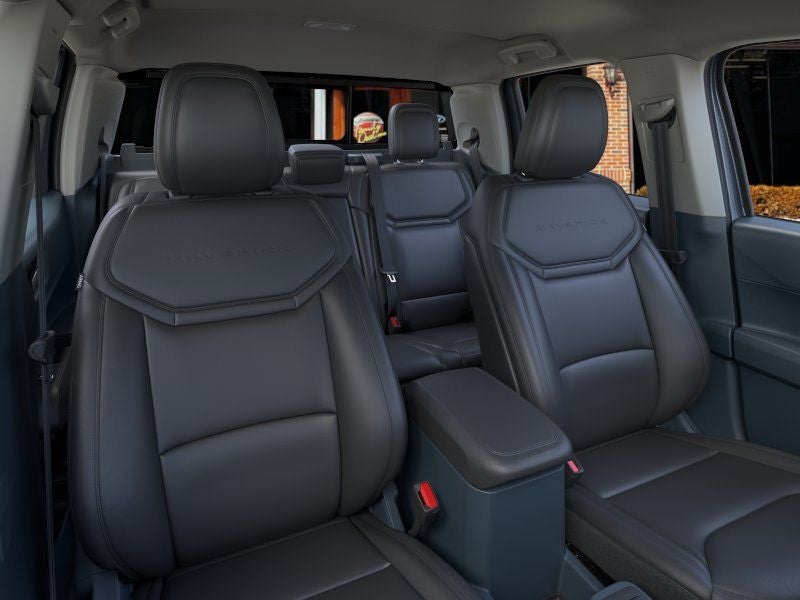 - The 2026 Ford Maverick Lariat AWD delivers the versatility of a pickup with the comfort, technology, and efficiency modern drivers expect. Finished in eye-catching Azure Gray Metallic, this Maverick pairs bold styling with a refined Navy Pier and Black Onyx interior, giving the truck a distinctive look inside and out. Its 2.0L EcoBoost engine paired with an automatic transmission and all-wheel drive provides confident performance, making it equally capable on daily commutes, weekend projects, or road trips across Michigan. Inside the cabin, the Maverick Lariat blends comfort with advanced technology. The driver is greeted by an 8-inch digital cluster display and a large 13.2-inch center touchscreen powered by SYNC 4, offering seamless connectivity, voice control, and smartphone integration. Premium touches like ambient lighting, dual-zone automatic climate control, a heated soft-vinyl wrapped steering wheel with mounted controls, and illuminated sun visors enhance the driving experience. The interior is designed with practicality in mind as well, featuring flip-up rear seats with under-seat storage, rear USB ports, and convenient power points for everyday usability. Entertainment and connectivity are front and center thanks to the B&O premium sound system with eight speakers, SiriusXM with 360L capability, and built-in 5G modem connectivity through the Ford App ecosystem. With Intelligent Access with push-button start and remote start, getting on the road is simple and convenient in any season. On the outside, the Maverick stands out with the Black Appearance Package, adding 19-inch black painted aluminum wheels and distinctive styling elements that give the truck a sportier presence. The bed is built for productivity with the innovative FLEXBED storage system, enclosed bed storage, LED box lighting, and a durable Tough Bed spray-in bedliner. A power sliding rear window enhances ventilation, while the 4K Tow Package and trailer tow hitch add capability for hauling gear, trailers, or recreational equipment. Fords commitment to driver confidence is evident through the Mavericks advanced safety features. Equipped with Ford Co-Pilot360 Assist 2.0, this truck includes helpful technologies like Pre-Collision Assist with Automatic Emergency Braking, a 360-degree camera system, front and rear parking sensors, and auto high-beam LED headlamps. Additional protections such as Safety Canopy airbags, SecuriLock anti-theft technology, and a tire pressure monitoring system further enhance peace of mind on every drive. Combining pickup capability, modern technology, and premium Lariat comfort, the 2026 Ford Maverick Lariat AWD is designed for drivers who want a truck that works hard during the week and adapts easily to whatever the weekend brings.