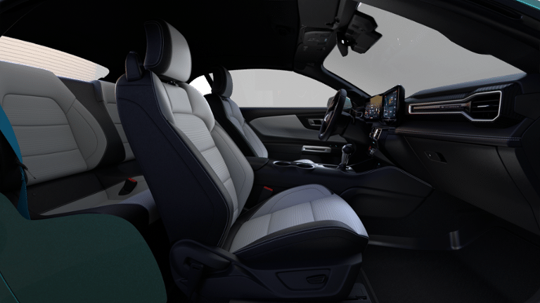 - Experience open-air excitement and modern performance in this stunning 2026 Ford Mustang EcoBoost Convertible Premium, finished in the eye-catching Adriatic Blue Metallic. This 4-passenger sports car blends iconic Mustang style with cutting-edge technology, refined comfort, and turbocharged exhilaration. Under the hood, the 2.3L EcoBoost engine paired with a 10-speed automatic transmission delivers smooth, responsive power whether you're cruising the shoreline or carving up scenic backroads. The Active Valve Performance Exhaust lets you tailor the Mustangs growl, while the 3.15 Limited-Slip Axle and independent rear suspension help provide confident handling. Step inside the Space Gray leather-trimmed interior and enjoy a cabin thats both sporty and sophisticated. The Premier Trim with Color Accent adds an upscale, modern touch, while the 12.4" digital cluster and 13.2" center display with magnesium-framed curved glass bring advanced tech right to your fingertips. Ambient Lighting with MyColor lets you personalize your drive even further. This EcoBoost Convertible Premium comes equipped with the Ford Co-Pilot360 Assist+ suite, giving you added confidence with features like advanced driver assistance and intuitive safety tech. For everyday comfort, youll enjoy conveniences such as dual-zone automatic climate control, a heated leather-wrapped steering wheel, rain-sensing wipers, Intelligent Access with push-button start, and remote start through the Ford app. A premium driving experience is enhanced by the 12-speaker B&O Sound System, delivering rich, immersive audio whether the top is up or down. Stylish 19" Premier Polished Aluminum wheels, Prime Blue seat belts, premium front and rear liners with carpeted mats, LED signature headlamps, sequential LED taillights, and approach lighting complete this Mustangs bold, modern look. Whether you're chasing sunsets with the top down or enjoying every curve of the daily drive, this 2026 Mustang EcoBoost Convertible Premium offers the perfect balance of performance, comfort, and advanced technologyall wrapped in unmistakable Mustang attitude.