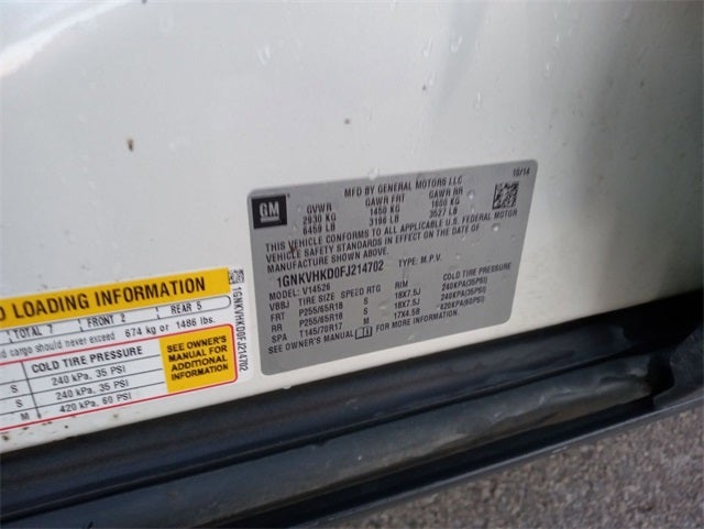 2015 Chevrolet Traverse 2LT 2LT Towing Pkg, 3rd Row Seating, AWD-, Traverse 2LT 2LT, 4D Sport Utility, 3.6L V6 SIDI, 6-Speed Automatic, AWD, White Diamond Tricoat, Ebony Cloth, 3.16 Axle Ratio, 8-Way Power Driver Seat w/Power Lumbar, Alloy wheels, Auto-Dimming Inside Rear-View Mirror, Bluetooth® For Phone, Body-Color Bodyside Moldings, Bose Premium 10-Speaker Audio System Feature, Enhanced Driver Information Center, Front Fog Lamps, Front Row Side-Impact Air Bags, Heated Driver & Front Passenger Seats, Heated Power-Adjustable Body-Color Outside Mirrors, Interior Wood Grain Center Stack & Interior Trim, Leather-Wrapped Steering Wheel, Preferred Equipment Group 2LT, Rear Audio System Controls, Rear Park Assist, Rear Power Liftgate, Remote Vehicle Start, Tri-Zone Automatic Climate Control, Universal Home Remote, Wheels: 18 x 7.5 Machined (4). AWD