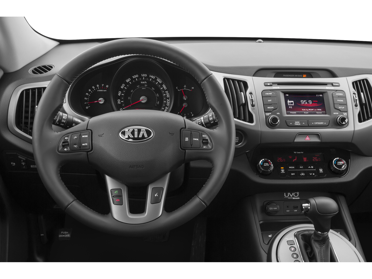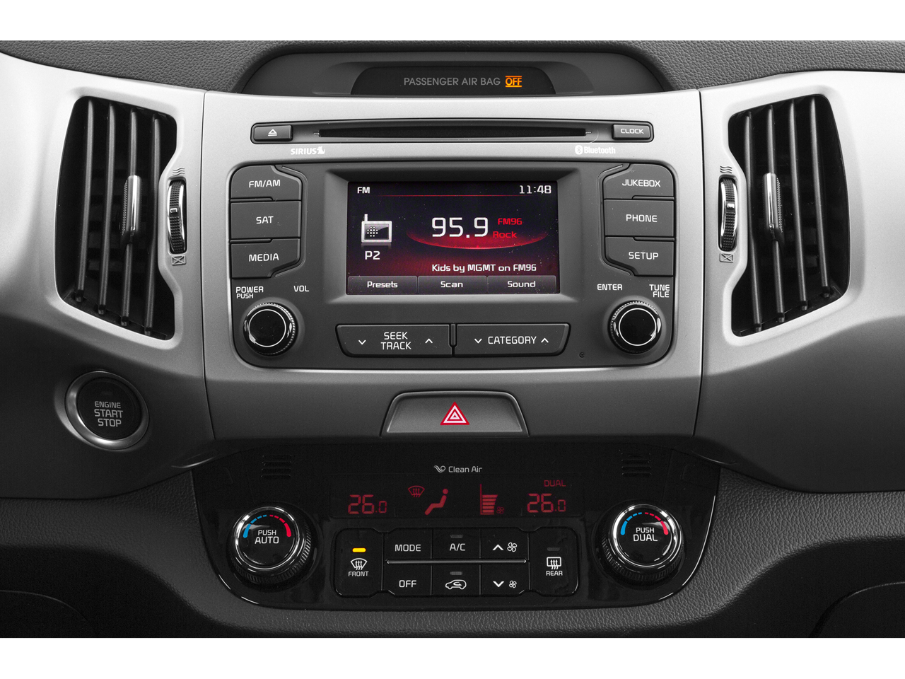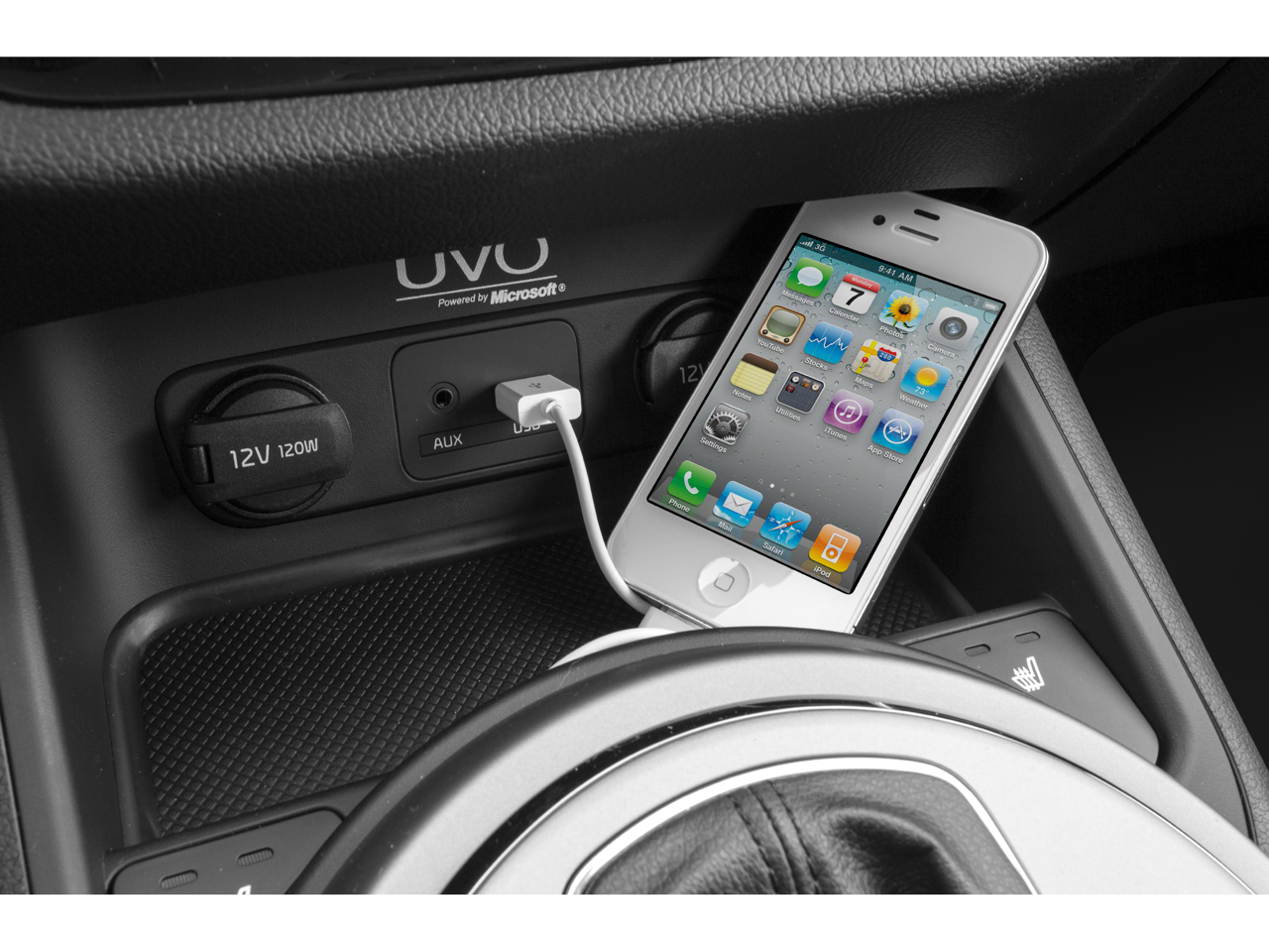 - Radio: AM/FM/CD w/UVO Infotainment -inc: Sirius satellite radio, USB and auxiliary input jacks, Bluetooth (phone and streaming audio) Compatible with Apple USB cable
