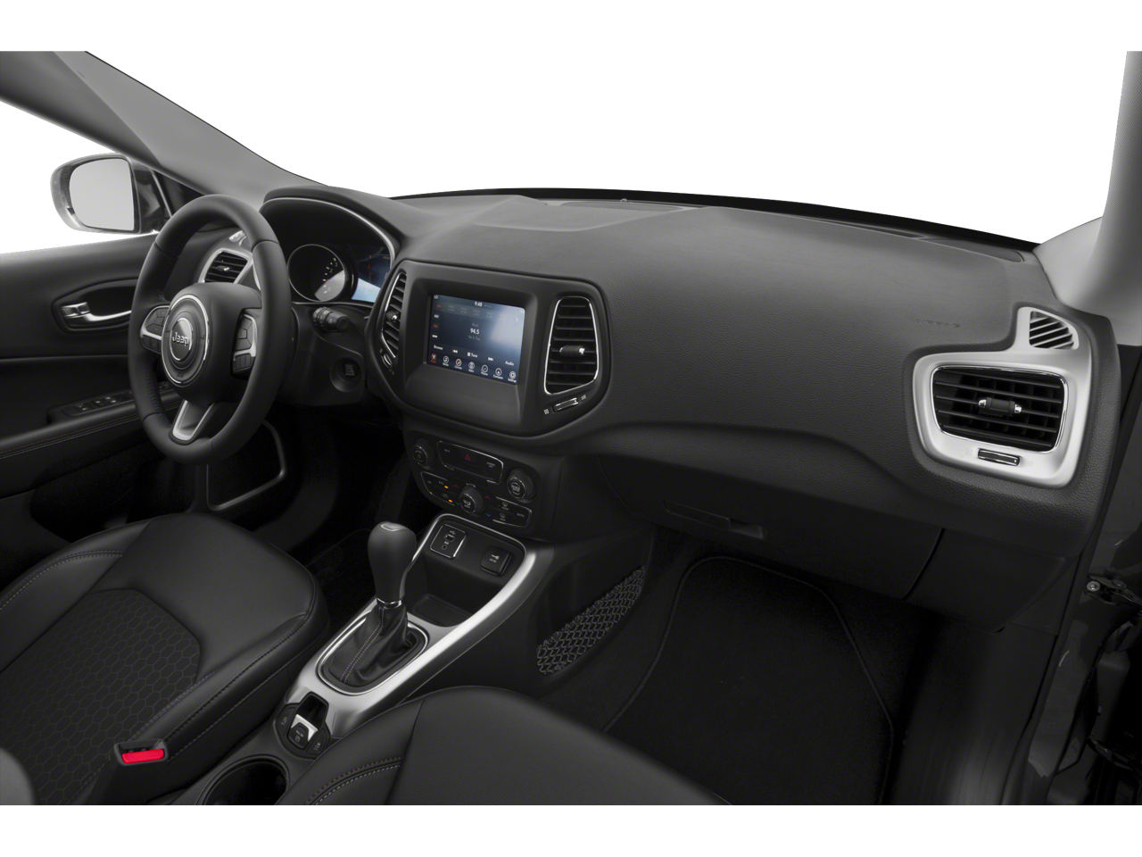 - This 2018 Jeep Compass Latitude 4x4 offers a smart blend of capability, comfort, and modern technology, making it a great choice for daily driving and year-round Michigan weather. Powered by a 2.4L I4 MultiAir engine paired with a smooth 9-speed automatic transmission, it delivers confident performance along with Jeep’s Selec-Terrain® system for added traction on varying road conditions. Finished in Diamond Black Crystal Pearl-Coat with a black interior, this Compass features premium cloth and vinyl bucket seats and a well-designed cabin with thoughtful details throughout. The interior includes dual-zone automatic climate control, ambient LED lighting, a leather-wrapped steering wheel and shift knob, and a power 8-way driver seat with power lumbar adjustment for added comfort on longer drives. Technology highlights include the Uconnect® system with a 7-inch touchscreen display, Apple CarPlay® and Android Auto™ capability, Bluetooth® streaming audio, SiriusXM® satellite radio, and steering-wheel-mounted audio controls. A 7-inch color driver information display keeps important vehicle data easily visible while driving. Safety and convenience features include a rear backup camera, push-button start, remote start, proximity keyless entry, heated power mirrors, automatic headlamps, fog and cornering lamps, and electronic stability control. The exterior is finished with 17-inch silver painted aluminum wheels, deep-tint glass, and classic Jeep styling. With versatile seating, a 60/40 split-folding rear seat, and multiple power outlets throughout the cabin, this Compass Latitude is well-equipped to handle everything from commuting to weekend adventures.