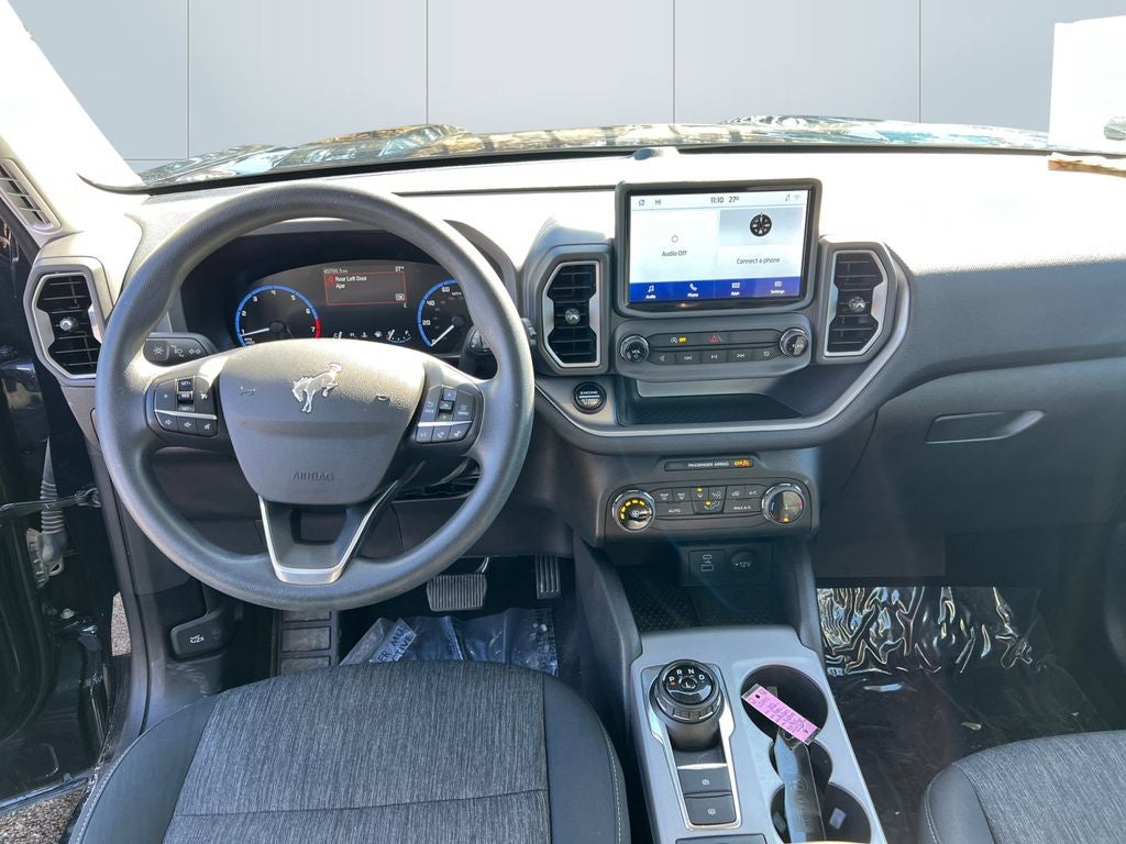 - Adventure-ready and built for everyday versatility, this 2022 Ford Bronco Sport Big Bend 4x4 stands out in a striking Alto Blue Metallic exterior paired with a durable Ebony Black unique cloth interior. Designed with both style and function in mind, this Bronco Sport delivers the perfect balance of rugged capability and modern comfort. Under the hood, you’ll find a responsive 1.5L EcoBoost engine paired with an 8-speed automatic transmission, giving you confident performance whether you’re navigating city streets or heading off the beaten path. The advanced 4x4 system with Terrain Management System offers five G.O.A.T. Modes™ (Goes Over Any Type of Terrain), helping you adapt to changing road and trail conditions with ease. The exterior design embraces Bronco’s iconic, adventure-inspired look with LED headlamps, a bold gray grille with white Bronco lettering, black wheel lip moldings, and 17-inch carbon gray high-gloss wheels. Practical features like roof rack side rails, a liftgate with liftglass, and heated power mirrors make it as functional as it is eye-catching. Inside, this Big Bend is built for comfort and utility. Easy-clean cloth bucket seats, a rubberized cargo floor, and a MOLLE strap system in the seatbacks make it perfect for active lifestyles. The 60/40 split-folding rear seats provide flexible cargo space, while thoughtful touches like electronic automatic temperature control, illuminated entry, and multiple USB ports enhance everyday convenience. Technology is front and center with the SYNC® 3 system featuring an 8-inch touchscreen and AppLink®, along with FordPass™ Connect with a 4G Wi-Fi hotspot to keep you connected wherever you go. You’ll also enjoy features like push-button start, remote keyless entry, and a rearview camera with washer for added ease and visibility. Safety comes standard with Ford Co-Pilot360™, offering a suite of driver-assist features designed to give you added confidence on every drive. With additional systems like AdvanceTrac™ with Roll Stability Control™, a Safety Canopy® System, and SOS Post-Crash Alert System™, this Bronco Sport is engineered with your protection in mind. Whether you're commuting, road-tripping, or exploring new trails, this 2022 Bronco Sport Big Bend is ready to take you there with capability, comfort, and unmistakable style.