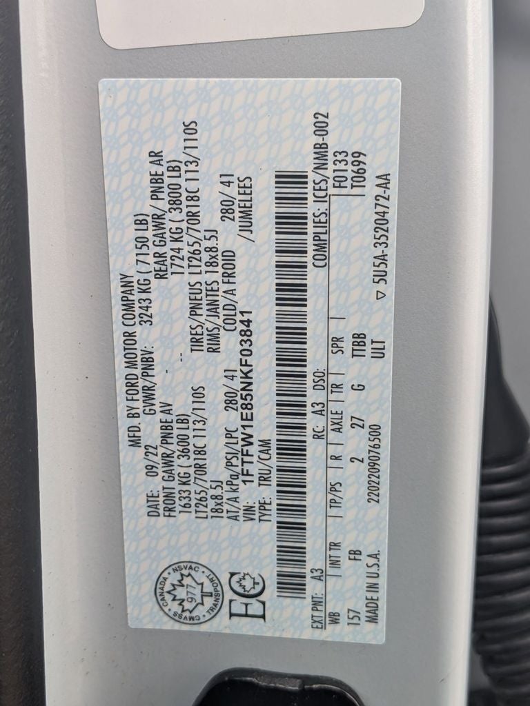 - This 2022 Ford F-150 XLT 4x4 SuperCrew is built to handle both the workday and the weekend with confidence, capability, and comfort. Finished in a sharp Space White Metallic exterior, it pairs rugged truck styling with modern design touches, including bold accents from the XLT Sport Package and 18-inch gloss black wheels for a clean, aggressive look. Under the hood, the proven 3.5L EcoBoost V6 engine delivers impressive power and performance, paired with a smooth-shifting 10-speed automatic transmission. The advanced 4x4 system with electronic shift-on-the-fly ensures you’re ready for changing road conditions, while features like trailer sway control, integrated trailer brake controller, and the Trailer Tow Package make towing and hauling feel effortless. Inside the spacious SuperCrew cabin, you’ll find a comfortable and functional layout with black sport cloth 40/console/40 seating. Thoughtful interior features like a power sliding rear window, dual-zone electronic automatic temperature control, and a tilt/telescoping steering wheel create a driver-focused experience. The SYNC® 4 infotainment system and FordPass Connect™ keep you connected wherever the road takes you. This F-150 is equipped with Equipment Group 302A, adding premium touches like LED box lighting, LED side-mirror spotlights, remote start, and the BoxLink cargo management system—making it as practical as it is versatile. A 400W outlet and a large 36-gallon fuel tank add even more convenience for long days on the job or road trips. Safety and driver-assist features are built in, including BLIS® with cross-traffic alert, lane-keeping system, pre-collision assist with automatic emergency braking, reverse brake assist, and a rear view camera, giving you added confidence behind the wheel. With its combination of strength, smart technology, and everyday usability, this 2022 F-150 XLT is ready to take on whatever comes next.
