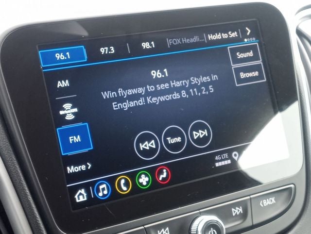 - Audio system, Chevrolet Infotainment 3 system, 8" diagonal color touchscreen, AM/FM stereo. Additional features for compatible phones include: Bluetooth audio streaming for 2 active devices, voice command pass-through to phone, Apple CarPlay and Android Auto capable.