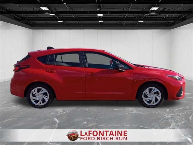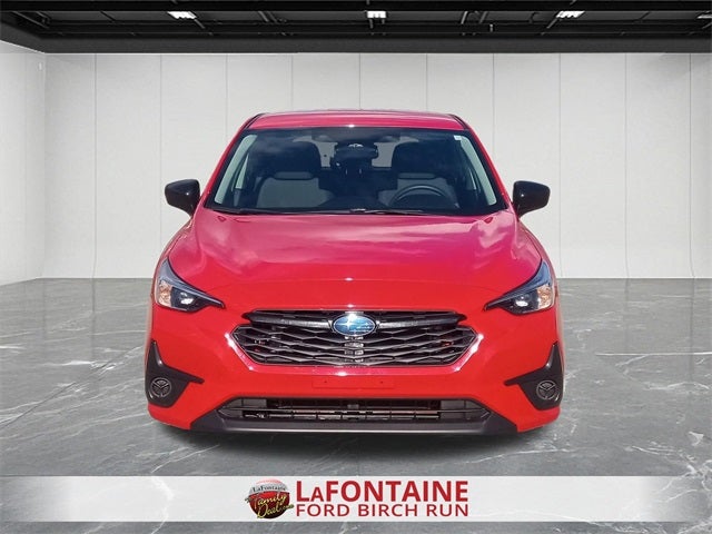 CARFAX One-Owner. 2025 Subaru Impreza Base Low Miles, Apple Car Play / Android Auto, AWD-, 4D Hatchback, 2.0L DOHC, CVT Lineartronic, AWD, Pure Red, Black Cloth, 4 Speakers, AM/FM radio: SiriusXM, Driver door bin, Driver vanity mirror, Front reading lights, Power steering, Power windows, Radio data system, Radio: Subaru Dual 7 Multimedia System, Rear window wiper, Speed control, Standard Model, Wheels: 16 x 6.0 1/2J Steel w/Full Cap. AWD